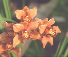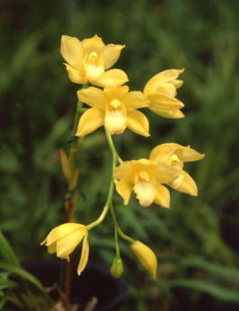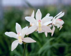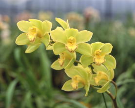 Cymbidiumは微風に揺れ・・・・花に訪れる昆虫は、それに同調しながら