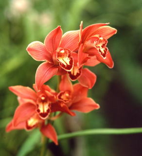 このような花はLipも濃艶な魅惑に彩られている。Cymの凄さである。原種の花にここに掲載したような赤花はない。交配の中に突然、爆発するように咲いて来るのである。私はマグマの赤を手に掬いたかった。燎原を焼く炎の赤。情念の底に燻る赤。恋の激湍の火砕流。愛に潜む業火の赤・・・・・。あまりに美しい赤である。Cymの赤は私のこころの深いところを激しくえぐる花である。