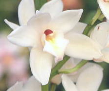 シンビの白からみると、カトレア、胡蝶蘭、パフィオ、デンドロ・・・・の白は単純である。別な言い方をすれば、白の一部分を持った花である。さらに別な言い方をすれば「自然の哲理」のようなものを、それらの花に私は感じられない。絵の具ではそれらの花の白は描けるが、Cymbidiumの白は描けない・・・・・。この違いは、天と地とほどのものであると私には思える。