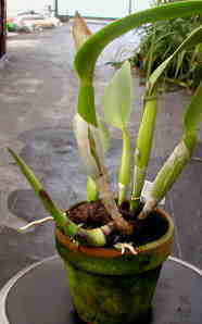 上の写真はCymbidiumの栽培と同じ場所に置いたSUGOI-ne植えのエビネ。 2006年6月26日