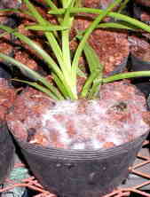 SUGOI-neで新しく植えた場合は、急にラン菌が繁殖するので「窒素飢餓」がおこる。