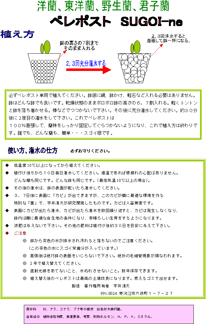 1 宇井清太新発見のラン菌で病害菌、雑菌を鉢内から追い出すこと。株に寄せ付けないこと。