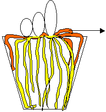 実は、これこそランの根なのです。この中心柱の切断面を顕微鏡で拡大して見ると右の図のようになっています。