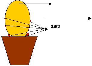 副芽は主芽がダメになったときピンチヒッターの芽です。主芽は花芽、リードになります。休眠芽は非常事態のとき発芽します。頂芽は進化の初期には花芽になる芽でしたが、シンビは主芽が花芽になると休眠芽になった。