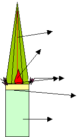 カトレアは毎年咲くのにシンビは毎年咲いてくれない・・・・。このような話を多く聞きますが、上の図をよく見るとカトレアは頂芽が花芽になりリードになる主芽が花芽になることはない。シンビはリードになる主芽が花芽になる。シンビで1バルブに2本も花立ちした場合はリードになるべき主芽が花芽になるのでリードは副芽になる。副芽は飽くまでもピンチヒッターですので大きいバルブに育つことは無い。生育も遅れるので花芽は分化しないことになる。シンビが毎年咲かない主な理由である。