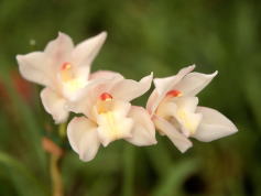 (コンカラー花とは花にアントキアン色素を持ちながら、Lipに斑点、バンドのない花をいいます。ピュアカラー花はアルビノともいい、アントキアン色素を含まない花です。)