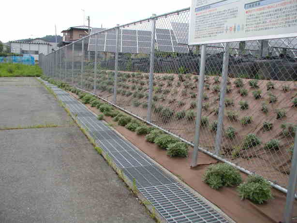 菌根イソギク緑化しない場所の雑草繁茂状態。