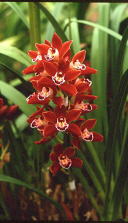 この品種の美しさは花弁の深紅の他に、Lipの素晴らしさにある。黒いまでに深い赤。純白の縁取り。この魅惑的なLipは、parishiiの遺伝子による。米国の栄光の時代にキラリと輝いた珠玉の深紅であった。私の秘蔵のシンビである。