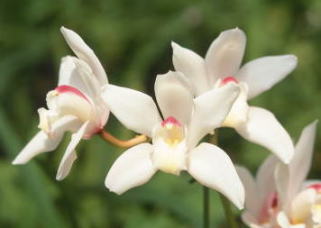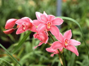Cymbidiumは微風に揺れ・・・・花に訪れる昆虫は、それに同調しながら