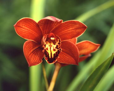 このような花はLipも濃艶な魅惑に彩られている。Cymの凄さである。原種の花にここに掲載したような赤花はない。交配の中に突然、爆発するように咲いて来るのである。私はマグマの赤を手に掬いたかった。燎原を焼く炎の赤。情念の底に燻る赤。恋の激湍の火砕流。愛に潜む業火の赤・・・・・。あまりに美しい赤である。Cymの赤は私のこころの深いところを激しくえぐる花である。
