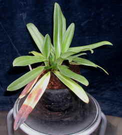 こういう進化をしたランで、曽祖父も祖父も葉が落ちるという栽培。