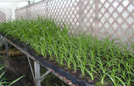 左の写真は、宇井清太のCymbidium育苗であるが、