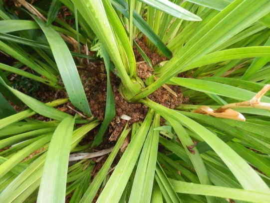 宇井 清太のシンビ地植え栽培では、ペレポストを葉、バルブの間に・・・