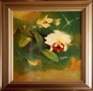 日本の洋ランは戦争でほとんど絶滅。戦後、洋ラン栽培が盛んになるのは、昭和30年代の半ばからである。日本画に多く描かれるようになるのは昭和40年代になってからである。奥村土牛、小倉遊亀、片山南風などに佳品がある。漆芸では音丸耕堂のカトレアシリーズ、寺井直次などに東洋ランの佳品がある。陶芸では、多くの作家が胡蝶蘭を描いているが、シンビを描く作家はいない。気品がでないようである。シンビは大衆化されるにつれ、ギフト用の鉢は描いても絵にならないようで、シンビの持っている品格は顕せない。近年の日本画には名作はないようです。やはり、シンビは水墨画に合う。