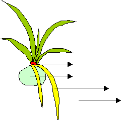 露出した根では、外層の細胞には葉緑素が出て緑の根になります。照明下のフラスコ内の根では非常に多くの葉緑素が発生します。