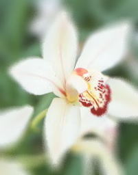 他の多くのランのように真正面から撮ったのでは、花を写したことになるがCymbidiumを写したことにならないからである。揺れる、流れる空気の波のようなものがないと、シンビを写したことにはならないと私はおもっている。